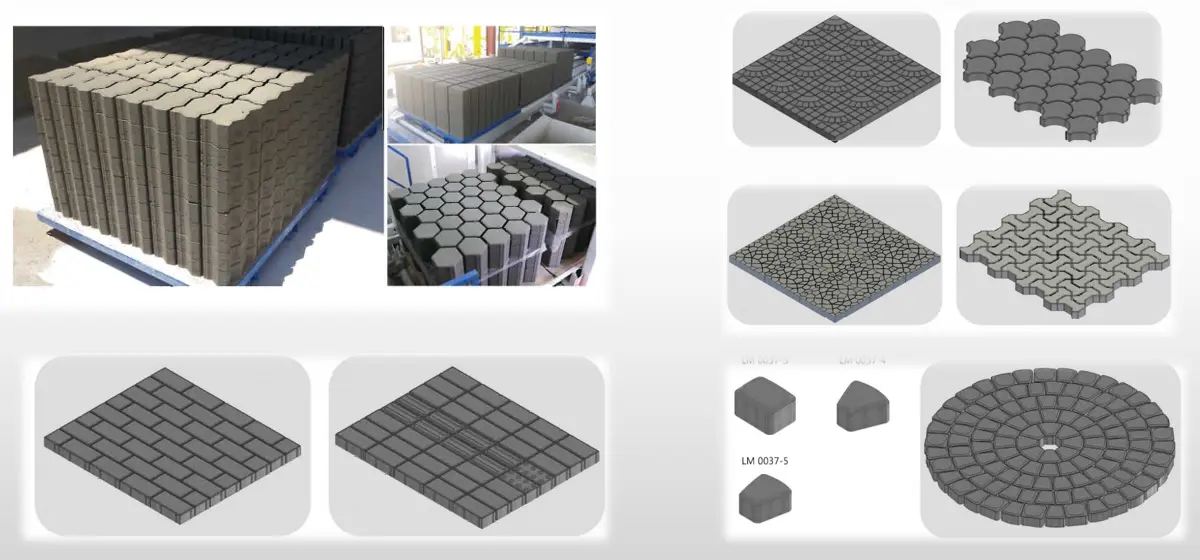 Cetakan bata hidrolik otomatis adalah cetakan pembentuk batu bata yang menggunakan sistem hidrolik untuk menggerakkan dan mewujudkan produksi otomatis. Cetakan batu bata hidrolik otomatis merupakan alat yang digunakan untuk memproduksi batu bata dengan berbagai bentuk dan ukuran. Cetakan bata hidrolik otomatis biasanya terbuat dari bahan berkekuatan tinggi dan tahan aus seperti besi cor atau baja paduan. Mereka mempunyai beberapa ruang, yang masing-masing dapat membentuk batu bata. Saat digunakan, material batako yang telah dicampur ditempatkan ke dalam cetakan, kemudian diberikan tekanan tinggi melalui sistem hidrolik untuk membentuk material batako di dalam cetakan. Batu bata yang sudah terbentuk dapat didinginkan dan dikeraskan di dalam cetakan, atau dikeluarkan dari cetakan untuk diproses lebih lanjut. Cetakan ini menggunakan tekanan yang dihasilkan oleh silinder hidrolik untuk menekan batu bata kosong, dan seluruh proses secara otomatis diselesaikan oleh sistem hidrolik tanpa campur tangan manusia. Biasanya dilengkapi dengan antarmuka pengoperasian layar sentuh yang sederhana, membuat pengoperasian lebih nyaman dan cerdas. Cetakan batu bata hidrolik otomatis tidak hanya meningkatkan efisiensi produksi, tetapi juga sangat mengurangi biaya tenaga kerja dan intensitas tenaga kerja. Prinsip kerja cetakan batu bata hidrolik otomatis terutama menggunakan tekanan yang dihasilkan oleh sistem hidrolik untuk menekan batu bata kosong menjadi bentuk. Pertama-tama, sistem hidrolik merupakan inti dari cetakan batu bata hidrolik otomatis, yang terdiri dari komponen-komponen seperti pompa hidrolik, silinder hidrolik, tangki oli hidrolik dan katup kontrol. Pompa hidrolik secara terus menerus mensuplai oli hidrolik pada tangki oli hidrolik sehingga oli hidrolik dipompa ke dalam silinder hidrolik. Silinder hidrolik adalah komponen kunci dari mesin bata hidrolik. Ini menghasilkan kekuatan besar melalui tekanan oli hidrolik untuk mewujudkan proses pengepresan batu bata.
